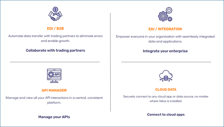 Velox all-in-one integration software gives you infinite flexibility to connect with trading partners, automate processes and digitally transform your business. A single platform to connect all your data and applications, a single place to view and manage every process. Seamless, stable, and secure – Velox breaks down the barriers to business growth and puts you in the driver’s seat.